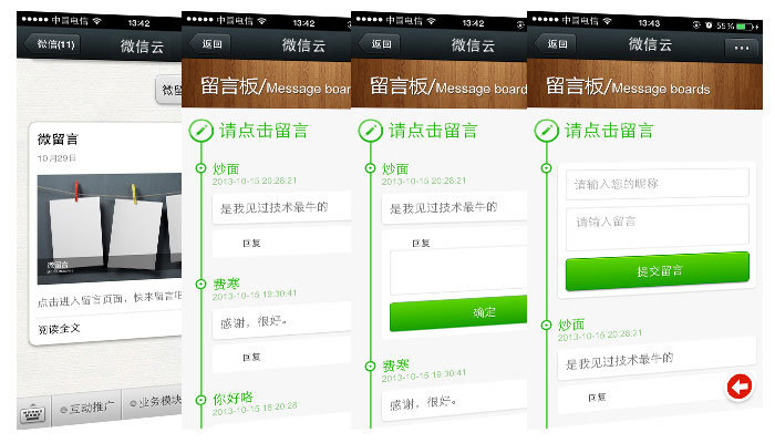 "微留言"是一種能為商家?guī)砭薮蟮纳鐣髁康墓δ?,允許留言可以被分享于留言者的朋友 圈、騰訊微博 和發(fā)送給好友,這意味著留言可以被無數(shù)的粉絲分享,用戶對商家進(jìn)行實(shí)時(shí)且客觀的評價(jià),真實(shí)的社交環(huán)境保證了留言的客觀性和有效性。"微留言"的使用商家只 需做好產(chǎn)品和用戶服務(wù)即可,隨著口碑的傳播,消費(fèi)者將源源不斷。